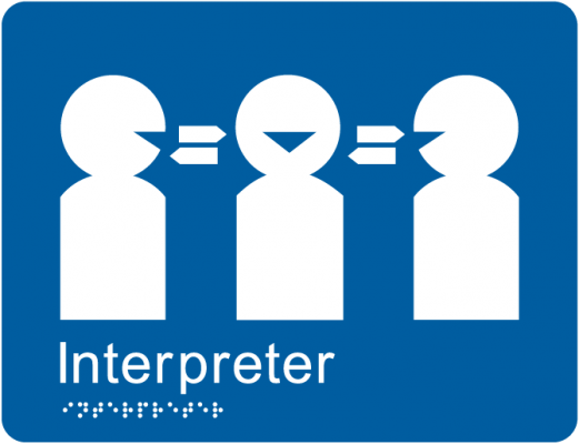 Braille Translation: InterpreterBlue acrylicFitted with Double Sided TapeSize: 310 x 165 x 3mm