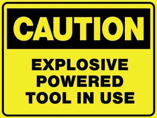 CAUTION EXPLOSIVE POWERED TOOL IN USE Product code: 4F6C3011-0156-4D49-B567-D5469B45