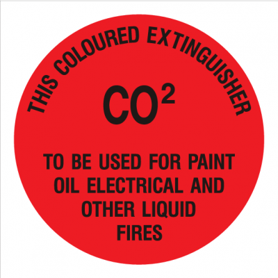 C02 - THIS COLOURED EXTINGUISHER TO BE USED FOR PAINT OIL ELECTRICAL AND OTHER LIQUID FIRES