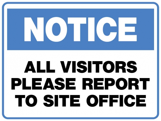 NOTICE ALL VISITORS PLEASE REPORT TO SITE OFFICE Product code: F01487C4-15C4-BE4B-9A88-0DC1EB24