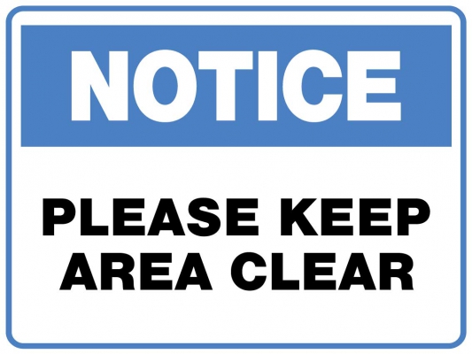 NOTICE PLEASE KEEP AREA CLEAR Product code: 3C937B0F-18EE-6B49-909E-A5FA708D