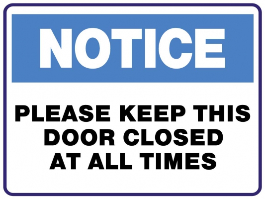 NOTICE PLEASE KEEP THIS DOOR CLOSED AT ALL TIMES Product code: 456C4391-917A-EC40-8DB2-87798A6D