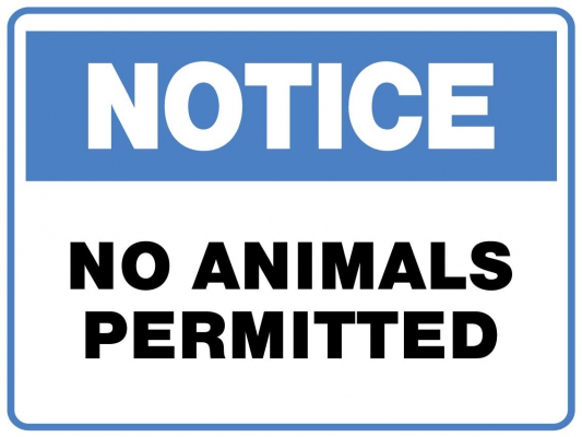 NOTICE NO ANIMALS PERMITTED Product code: 7ADE2A26-096A-7445-B910-029C0488