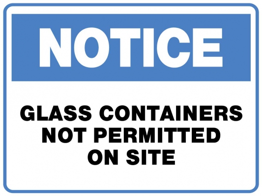 NOTICE GLASS CONTAINERS NOT PERMITTED ON SITE Product code: FAAB9353-133A-8043-B672-F4FCD602